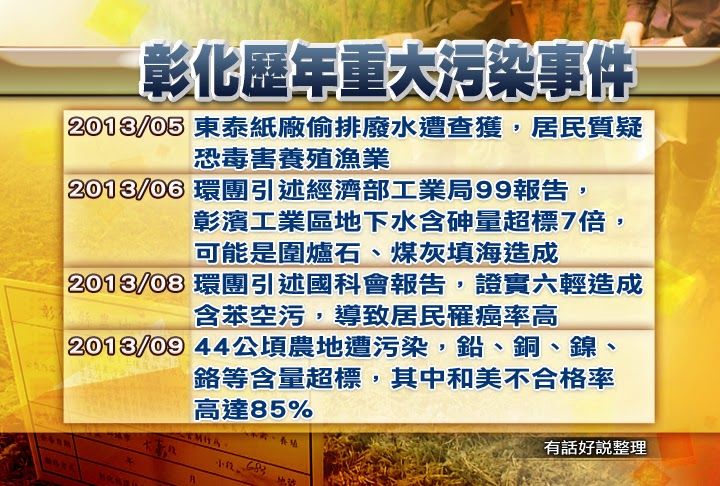 毒水排灌溉水源!沒被抓就是賺到!大小工廠一樣黑! 來賓 詹長權 台大公衛學院副院長 李根政 地球公民基金會執行長 來賓: 彰化環保聯盟理事長 蔡嘉陽 台灣大學公共衛生學院副院長 詹長權 地球公民基金會執行長 李根政 callout 彰化縣環保局秘書 江培根 彰化農田水利會總幹事 林永傳 彰化醫界聯盟總幹事 林世賢 此次的和美鎮跟彰化市的污染事件? 電鍍廠、五金廠的污染物危害? 電鍍廠、五金廠…高污染產業在彰化!嚴重程度? 灌排同源!灌排不分!工業喝好水,農業喝毒水!台灣宿命? 彰化鎘米事件?幾十年無法解決!為什麼? 追討不當利得? 沒被抓到就是賺到!偷排廢水廢液,無論產業大小,統統如此? Tags: 五金廠 廢水 彰化 有話好說 氰化物 污染 灌溉 環境議題
