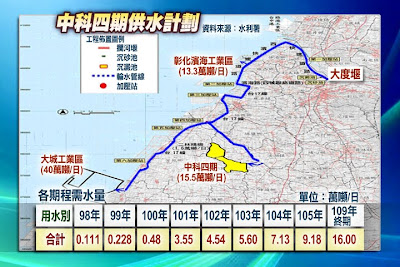 另外中科用水來源會不會與當地民生「爭水」?中科表示不會抽取地下水,而是在不影響農業用水的情況下,使用彰化農田水利會的水。但事實如何?